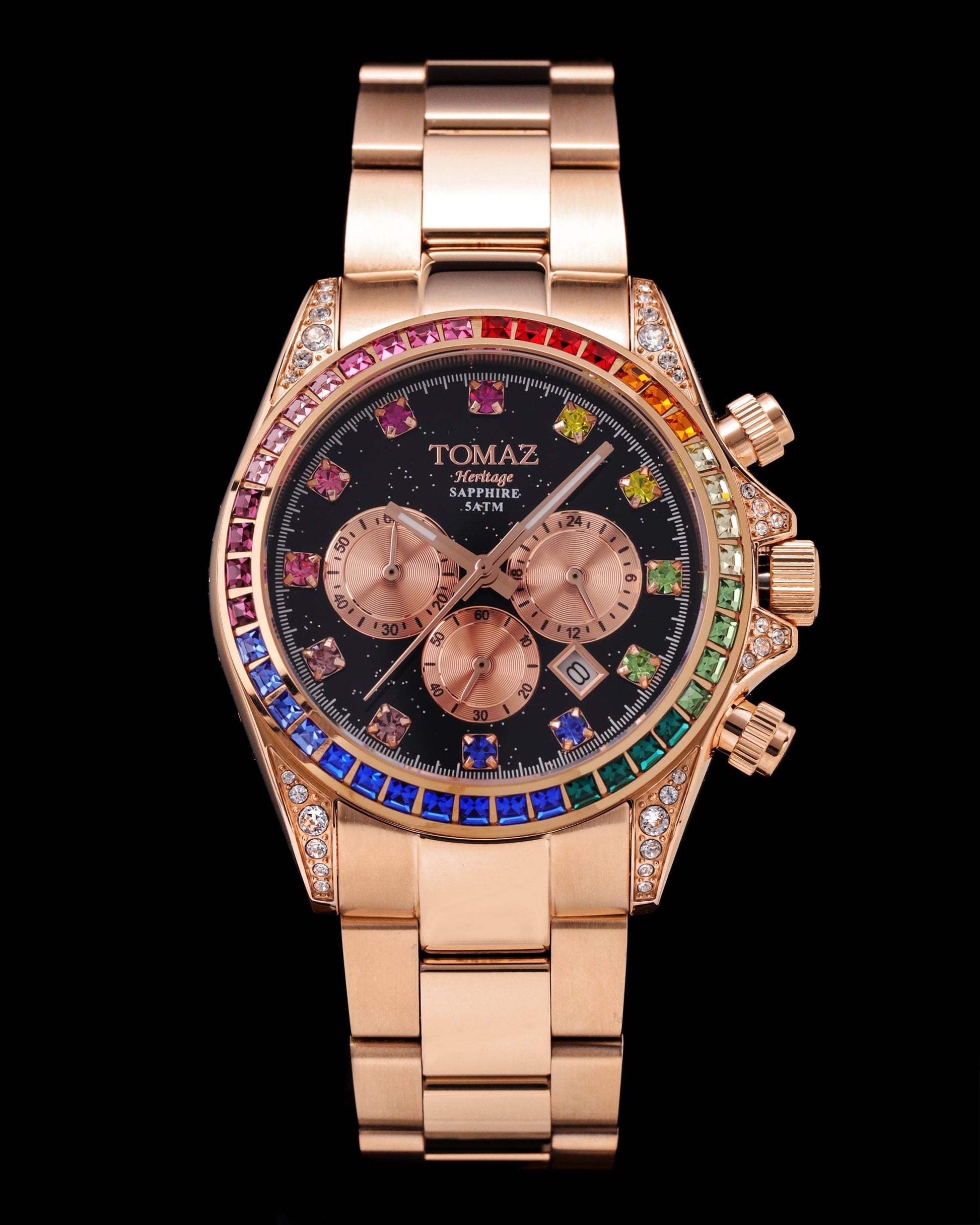 Tomaz Ladies Watch GR02L-D7 (Rosegold/Black) with Rainbow Swarovski (Rosegold Stainless Steel)